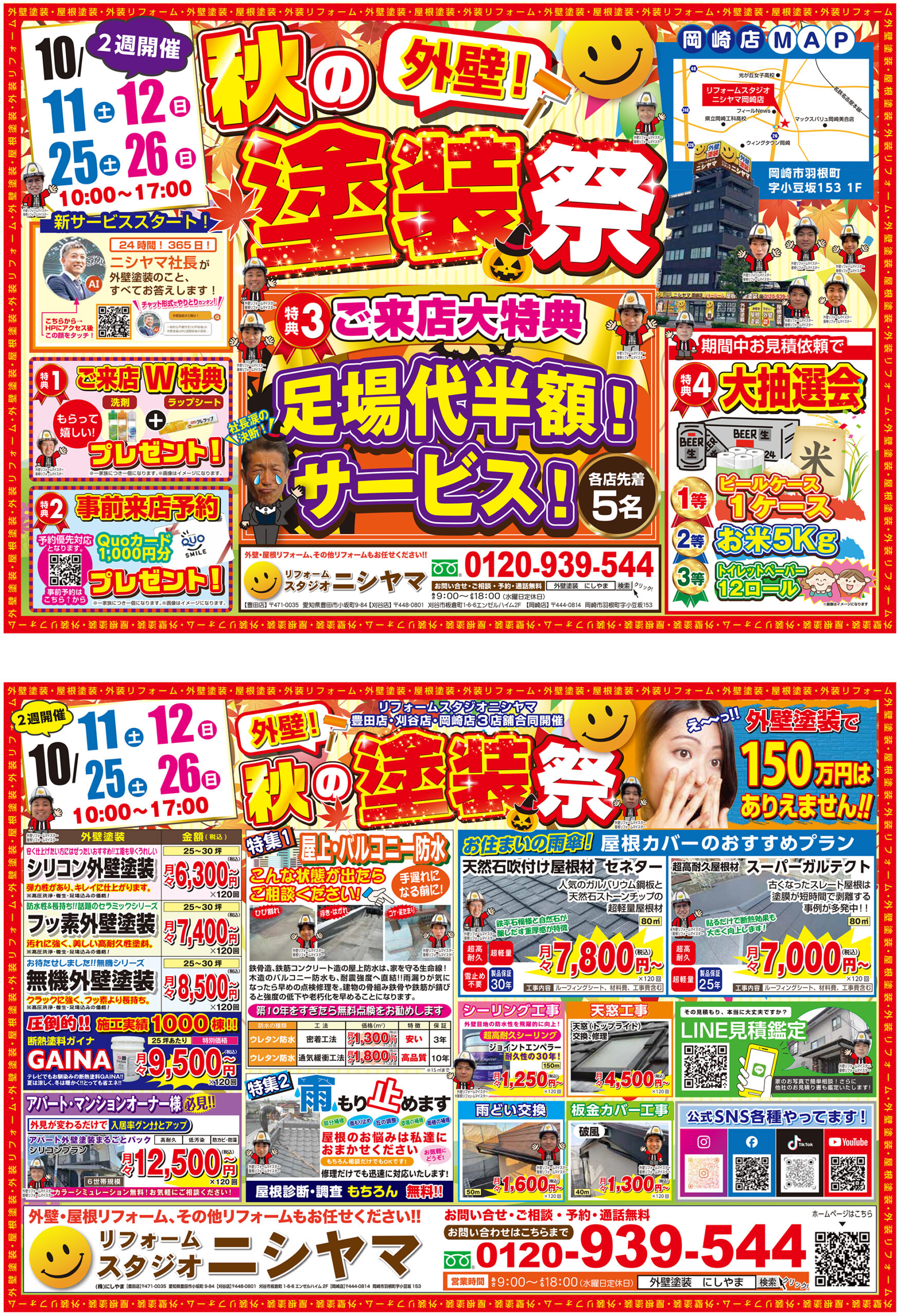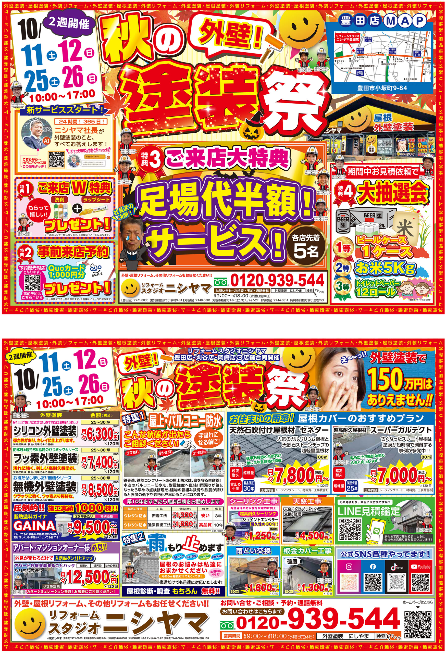 【10/11㊏12㊐,25㊏26㊐】3店舗同時開催!秋の外壁塗装祭!