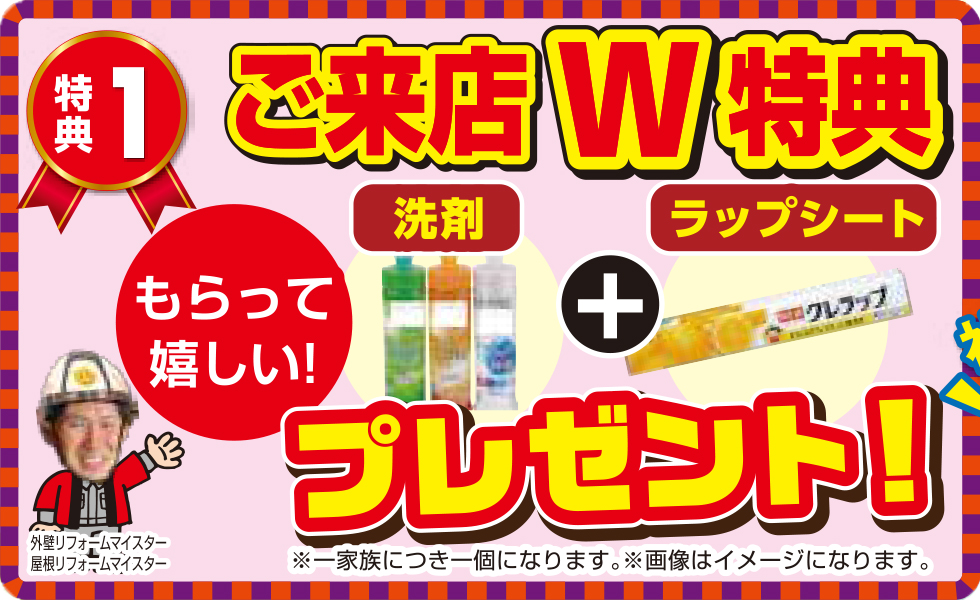 お得な特典① ご来店W特典でもらって嬉しい洗剤+ラップシート プレゼント!