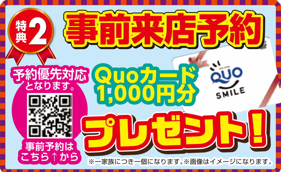 お得な特典② 事前来店予約で Quoカード1,000円分プレゼント!