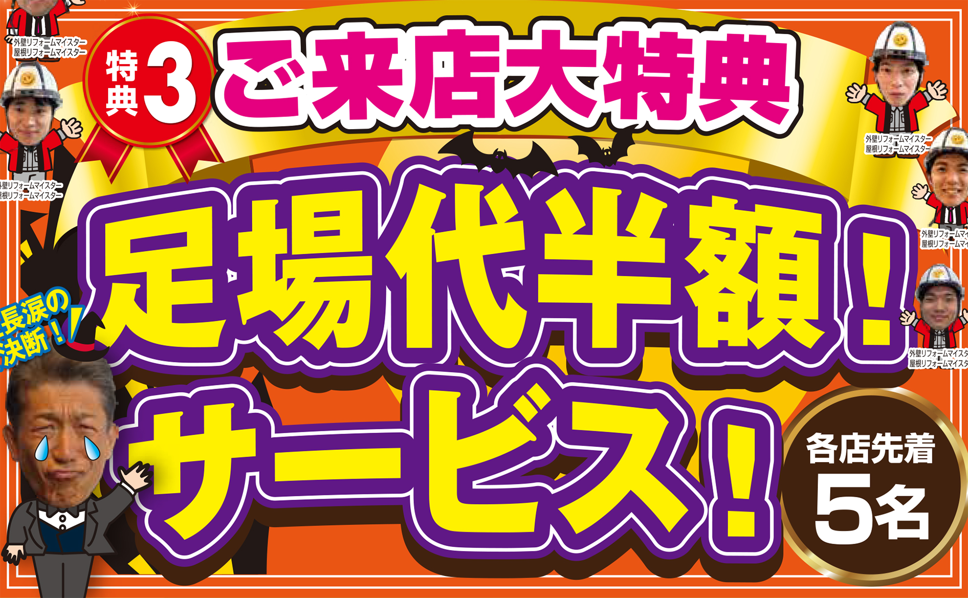 お得な特典③ ご来店大特典!足場代半額サービス!