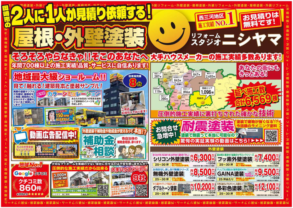 屋根・外壁塗装のリフォームスタジオニシヤマの最新チラシをご紹介します!