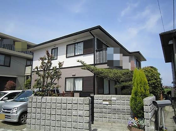 豊田市にてパナホームの外壁塗り替え工事を行いましたのでご紹介します。もともとが多彩色でしたので多彩色塗装や再現工法といって目地とタイル調部分との塗分けを提案しましたが、お客様の要望により多彩色部分を単色にて塗り替えました。せっかくの模様が・・・・と我々は思いましたがお客様のご希望を優先いたしました。