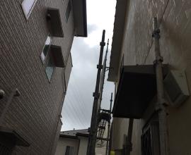 仮設足場設置工事です。作業の安全性を確保することは勿論のこと