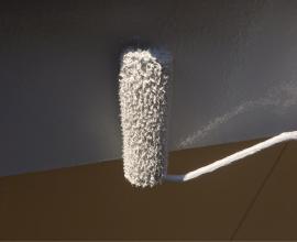 現在ではほとんどの場合ローラーで施工します。外壁の形状や塗料の種類によっては吹き付け塗装を行う場合もありますがリフォーム工事や改修工事の場合、 近隣が隣接しているケースが多いことから塗料飛散を防止するためにもローラー仕上げが主流となります。吹き付け塗装よりもローラー施工のほうが塗装の膜厚(塗膜)が厚くなるため外壁保護の観点からすると優位性が有ります。 平滑な面への塗装などは吹付けを行うこともあります。
