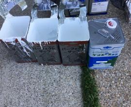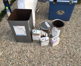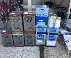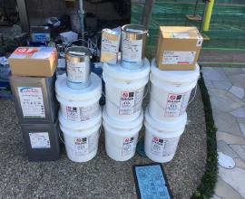 官公庁の物件では必ず行われる材料検収です。 実際にその現場で使用した材料を写真に収め、見積もりと相違がないかを確認します。また塗装面積に対し必要缶数も算出できるため規定塗布量通りに工事が行われたかも確認することが可能です。