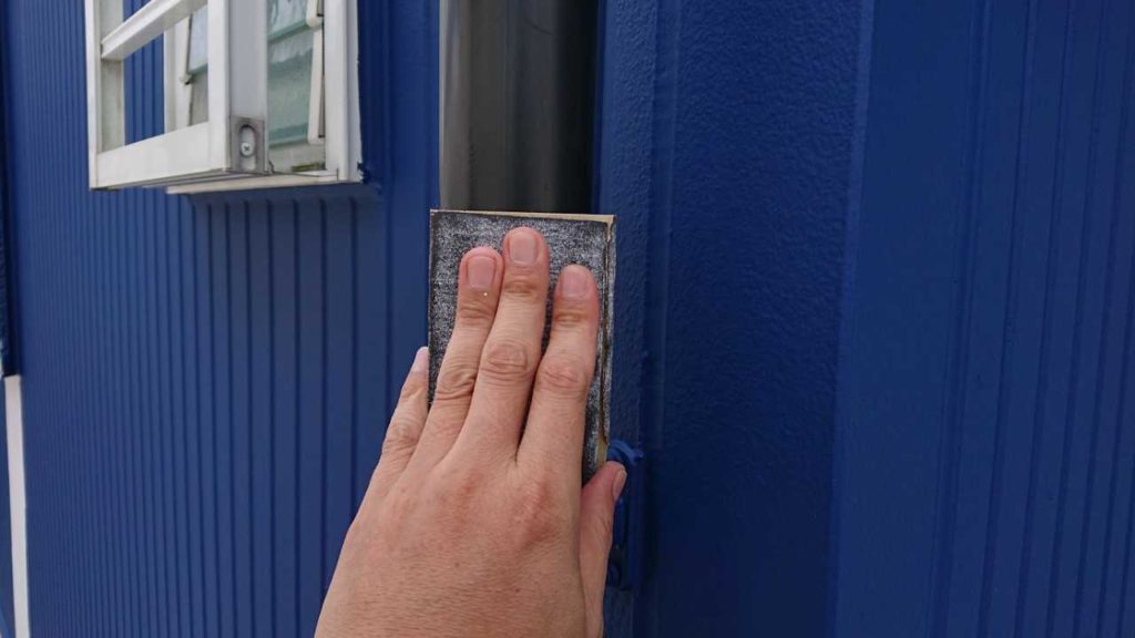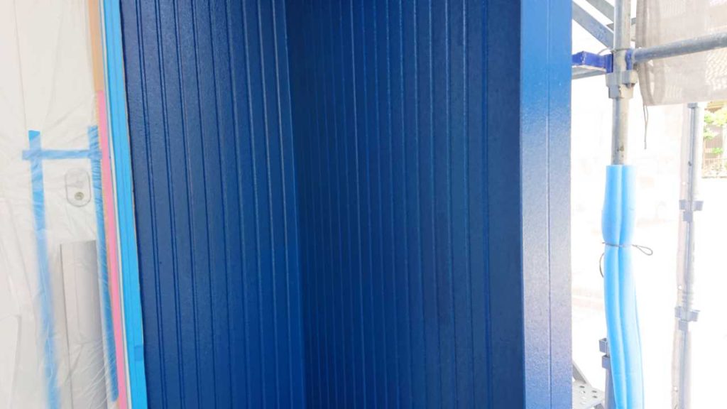 外壁塗装とは異なり湿気の帯びやすいこの部分にはカビの生えにくい専用塗料で塗装します。塗料の粒子が細かく基材に浸透しやすいため高い吸着力があり目地や釘頭などを目立ちにくくする効果もあります。