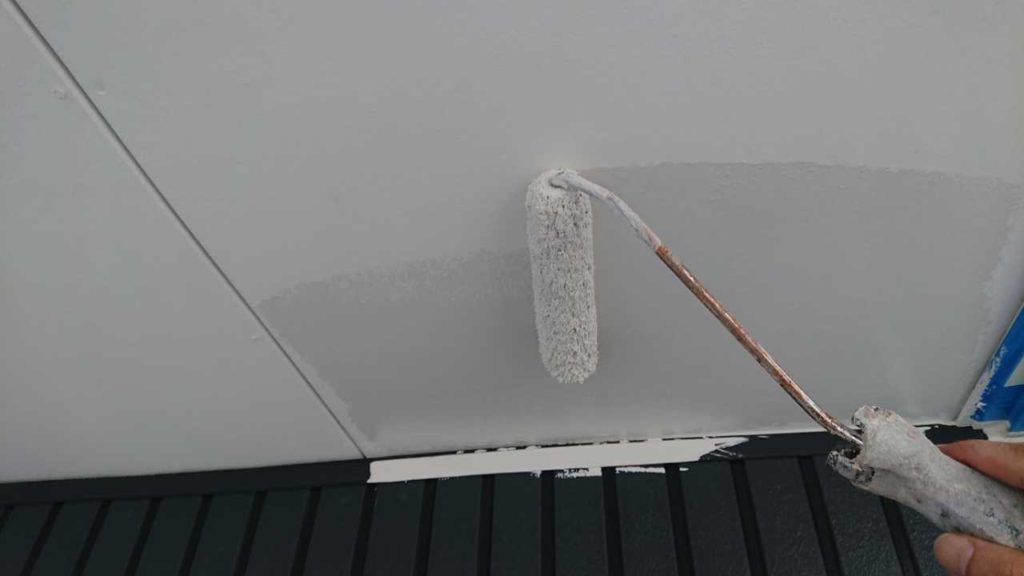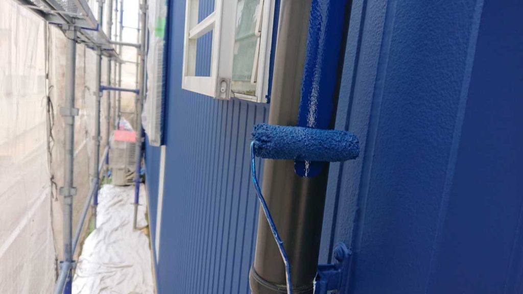現在ではほとんどの場合ローラーで施工します。外壁の形状や塗料の種類によっては吹き付け塗装を行う場合もありますがリフォーム工事や改修工事の場合、近隣が隣接しているケースが多いことから塗料飛散を防止するためにもローラー仕上げが主流となります。吹き付け塗装よりもローラー施工のほうが塗装の膜厚(塗膜)が厚くなるため外壁保護の観点からすると優位性があります。平滑な面への塗装などは吹付けを行うこともあります。