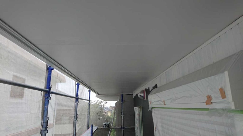 軒天の仕上げ塗装工事です。上裏(あげうら)とも表現します。