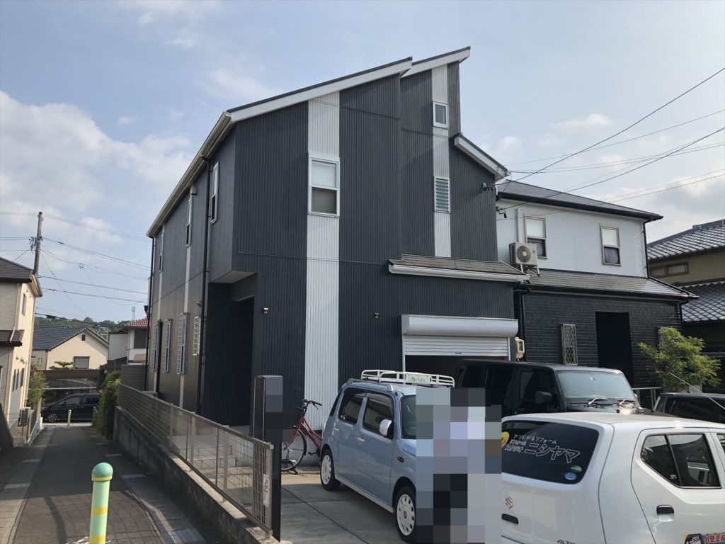 「黒い外壁はところどころ色褪せ、グレーっぽくなってしまっていました。イメージが一新するような爽やかな青色に塗装してください。」とのご要望でした。