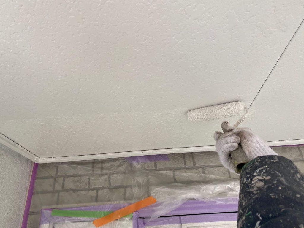 軒天の仕上げ塗装工事です。上裏(あげうら)とも表現します。