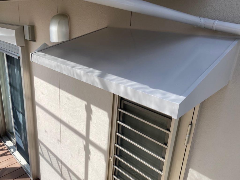 庇は鋼板製のものが多く、雨戸やシャッターボックスと同様に塗装します。