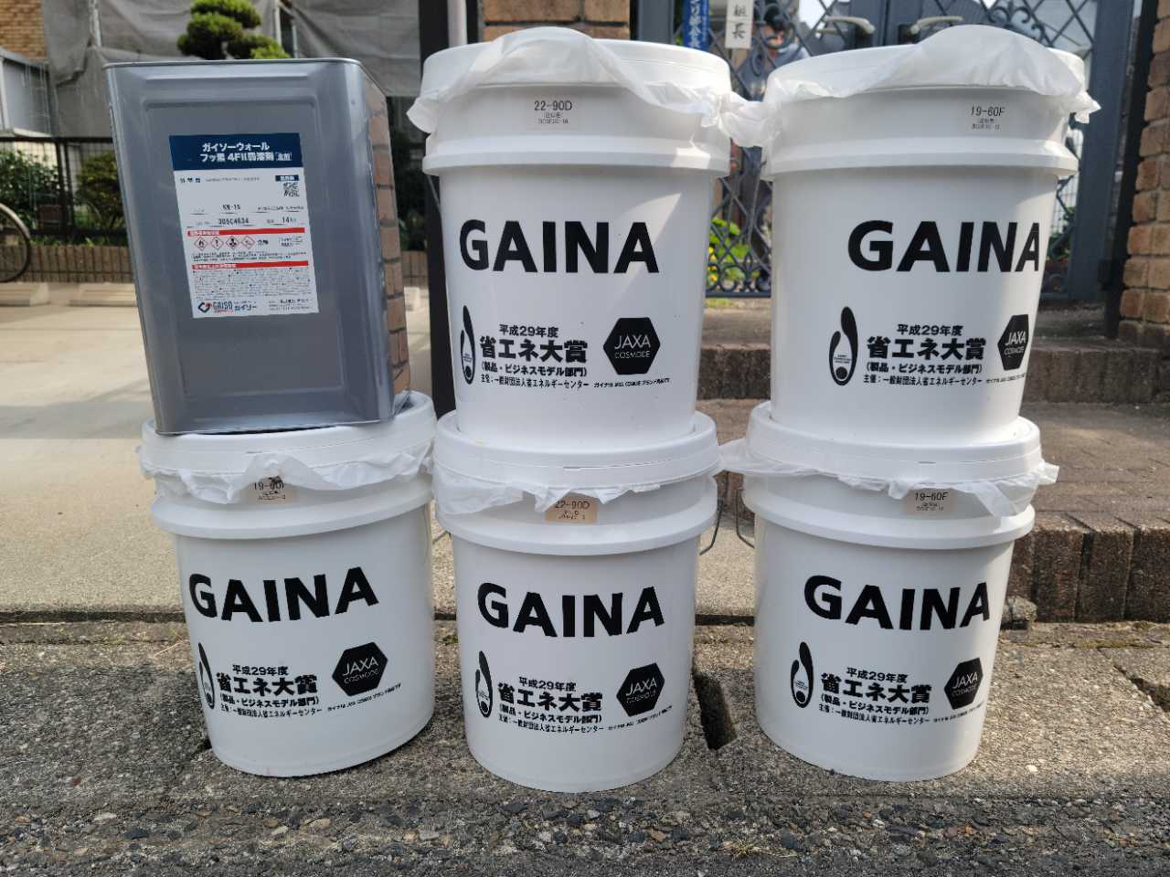 | 使用商材・建材 | 外壁①日進産業「断熱塗料ガイナ」:22-90D 外壁②日進産業「断熱塗料ガイナ」:19-60D |