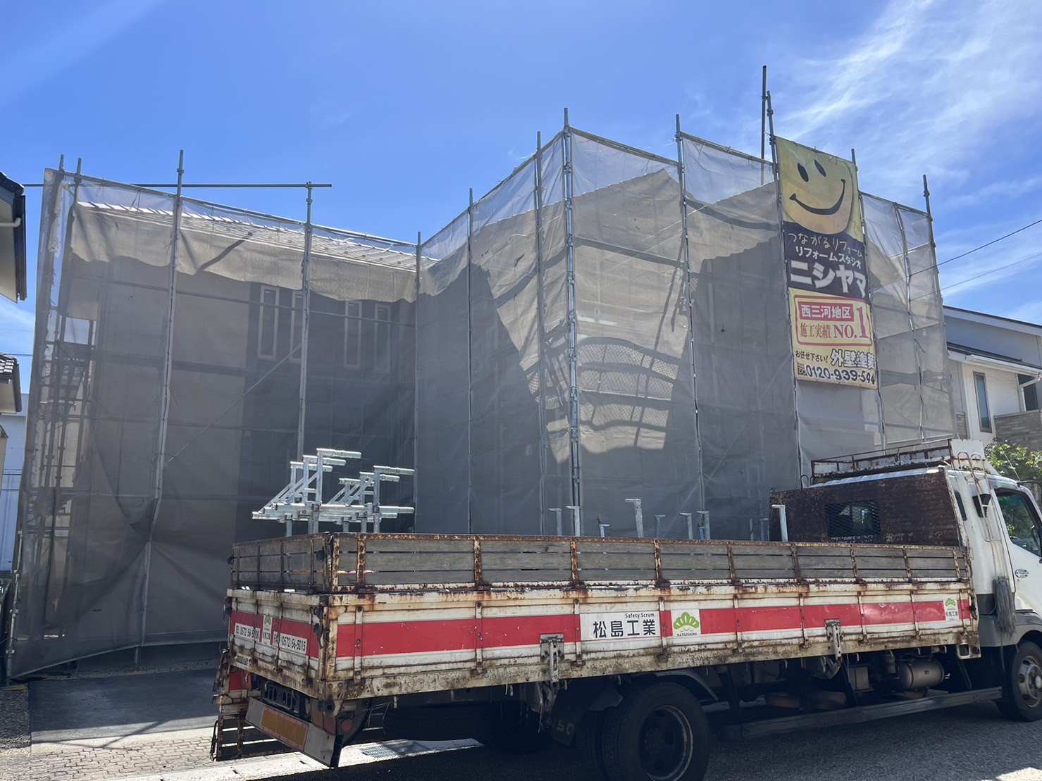 名鉄不動産施工のお住まいの外壁リフォーム工事。