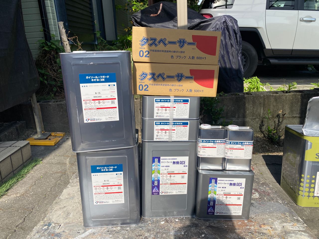 | 使用商材・建材 | 外壁①GAISO「ガイソーウォール無機ACE」:N-87 屋根「GRガードネオSI」:黒 |