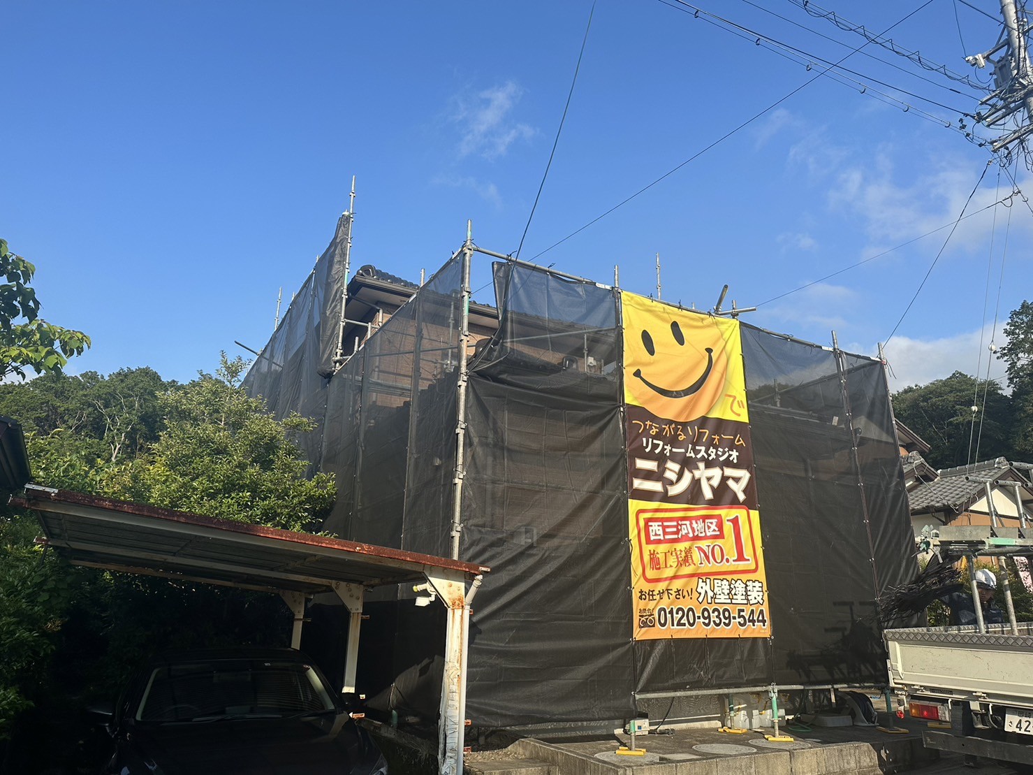 ウチダ工務店施工のお住まいの外壁リフォーム工事。