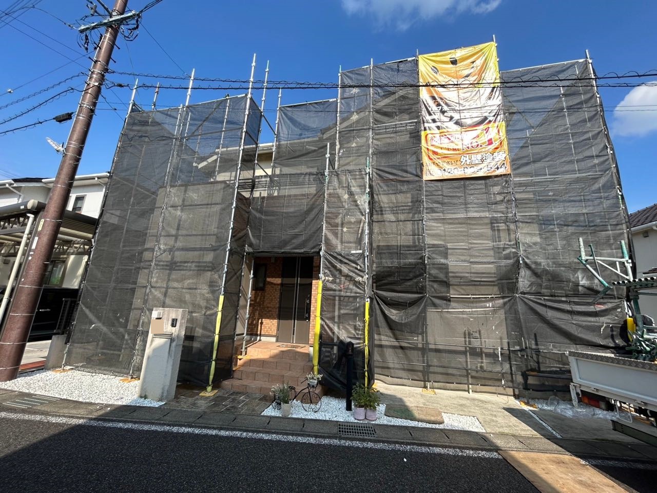 東新住建様施工のお住まいの外壁リフォーム工事。