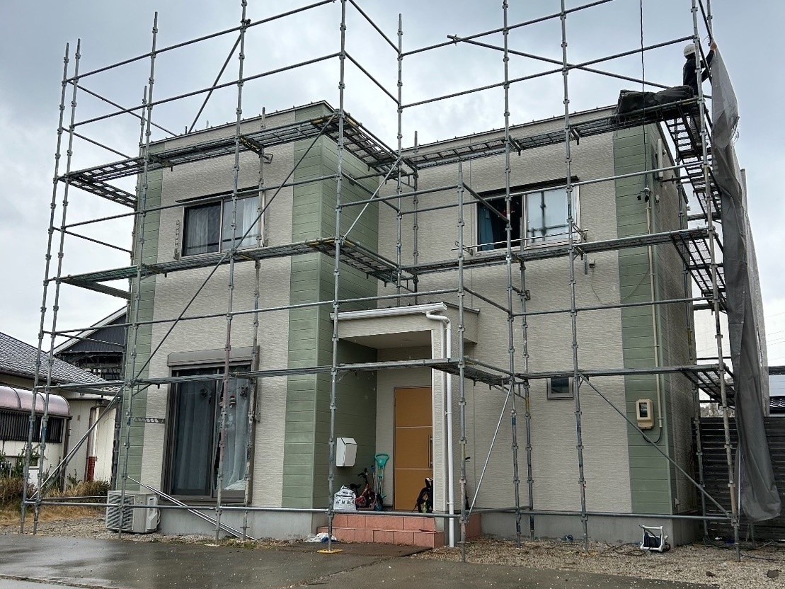 | 使用商材・建材 | 外壁①ダイフレックス「スーパーセランフレックス」:35-60D 外壁②ダイフレックス「スーパーセランフレックス」:25-90A 屋根GAISO「ガイソーウォール無機Z」:25-80A |