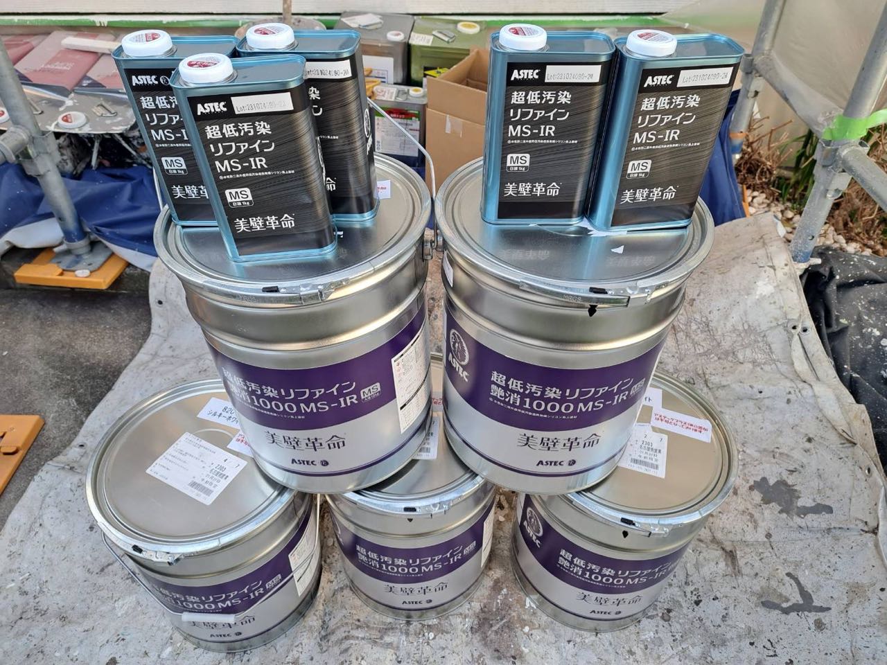 外壁①アステックペイントジャパン「超低汚染リファイン1000MS-IR 」:シルキーホワイト、