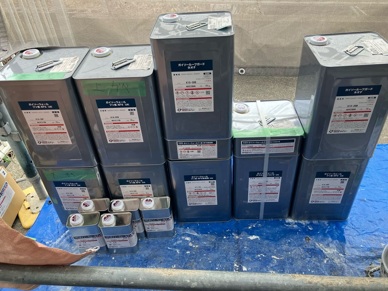 | 使用商材・建材 | 外壁①GAISO「ガイソーウォールフッ素4FⅡ」:19-92B 外壁②GAISO「ガイソーウォールフッ素4FⅡ」:15-50F 屋根ガイソー「GRガードネオF」:15-30B |