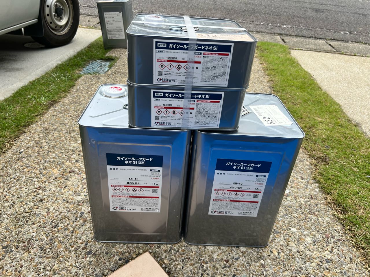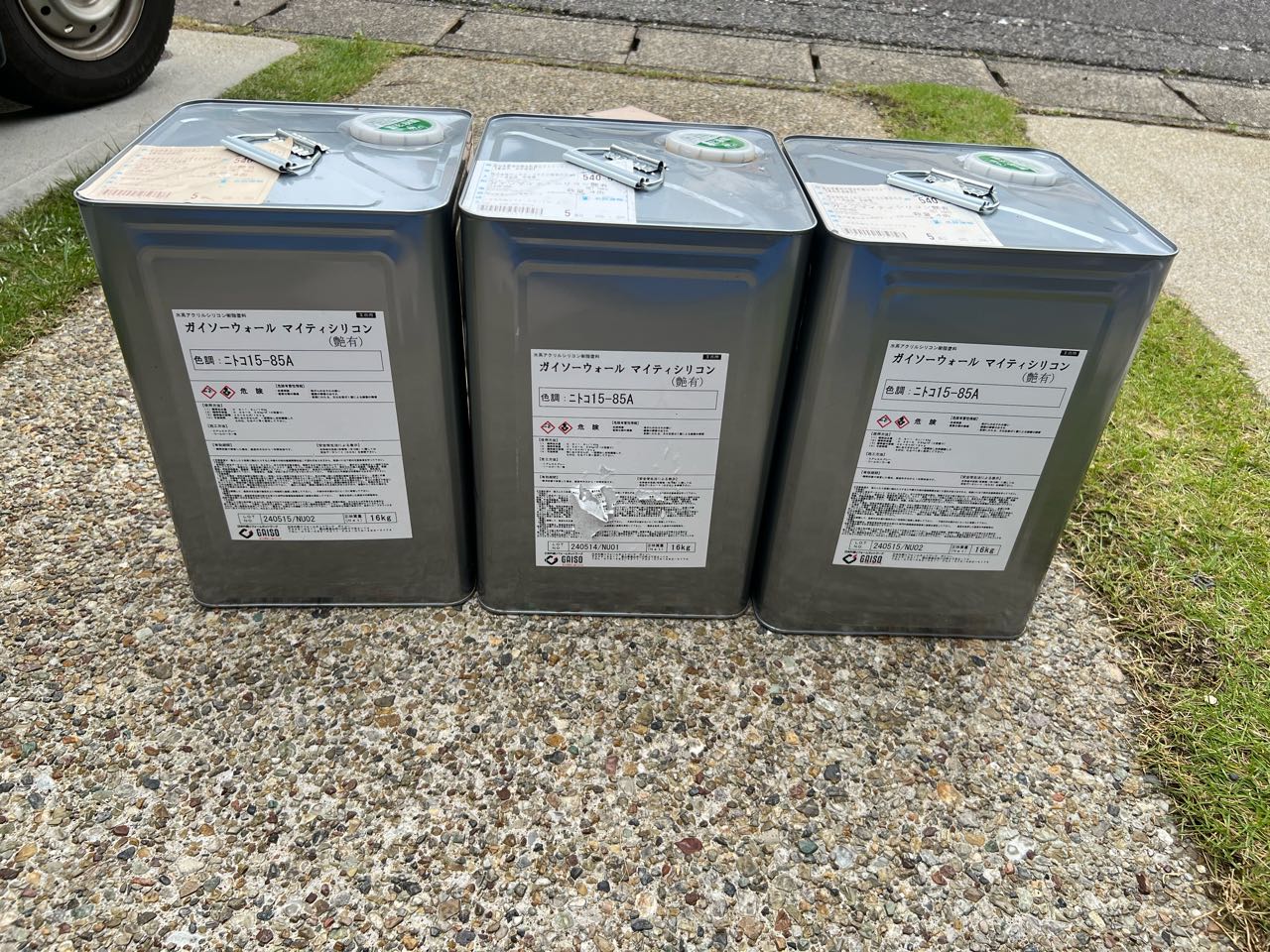 | 使用商材・建材 | 外壁①GAISO「ガイソーウォールマイティシリコン」:15-85A 外壁②GAISO「ガイソーウォールマイティシリコン」:15-40B 屋根ガイソー「 GRガードネオSI」:N-40 |