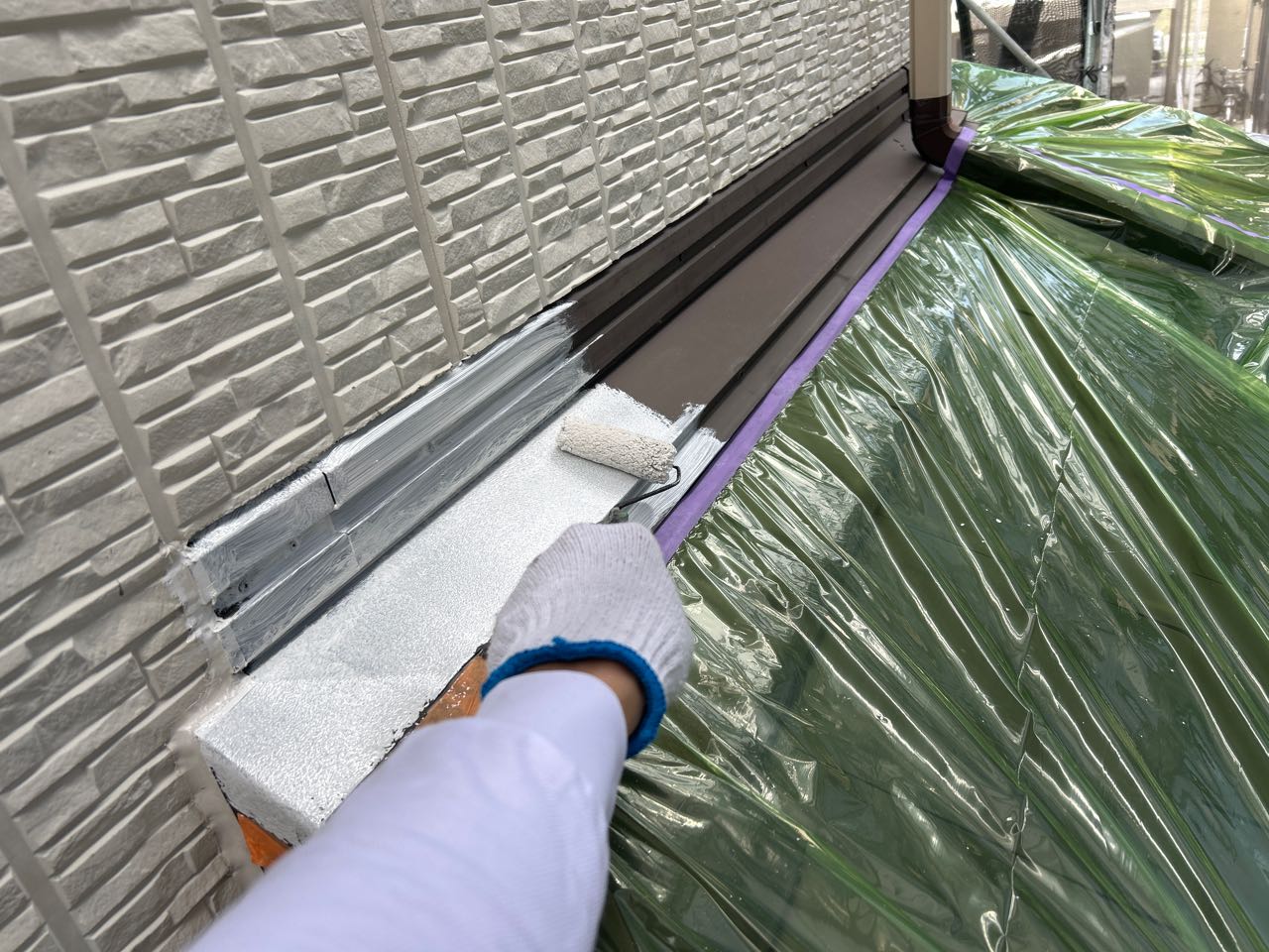 外壁塗装・ ベランダ防水, 付帯部板金を行いました。