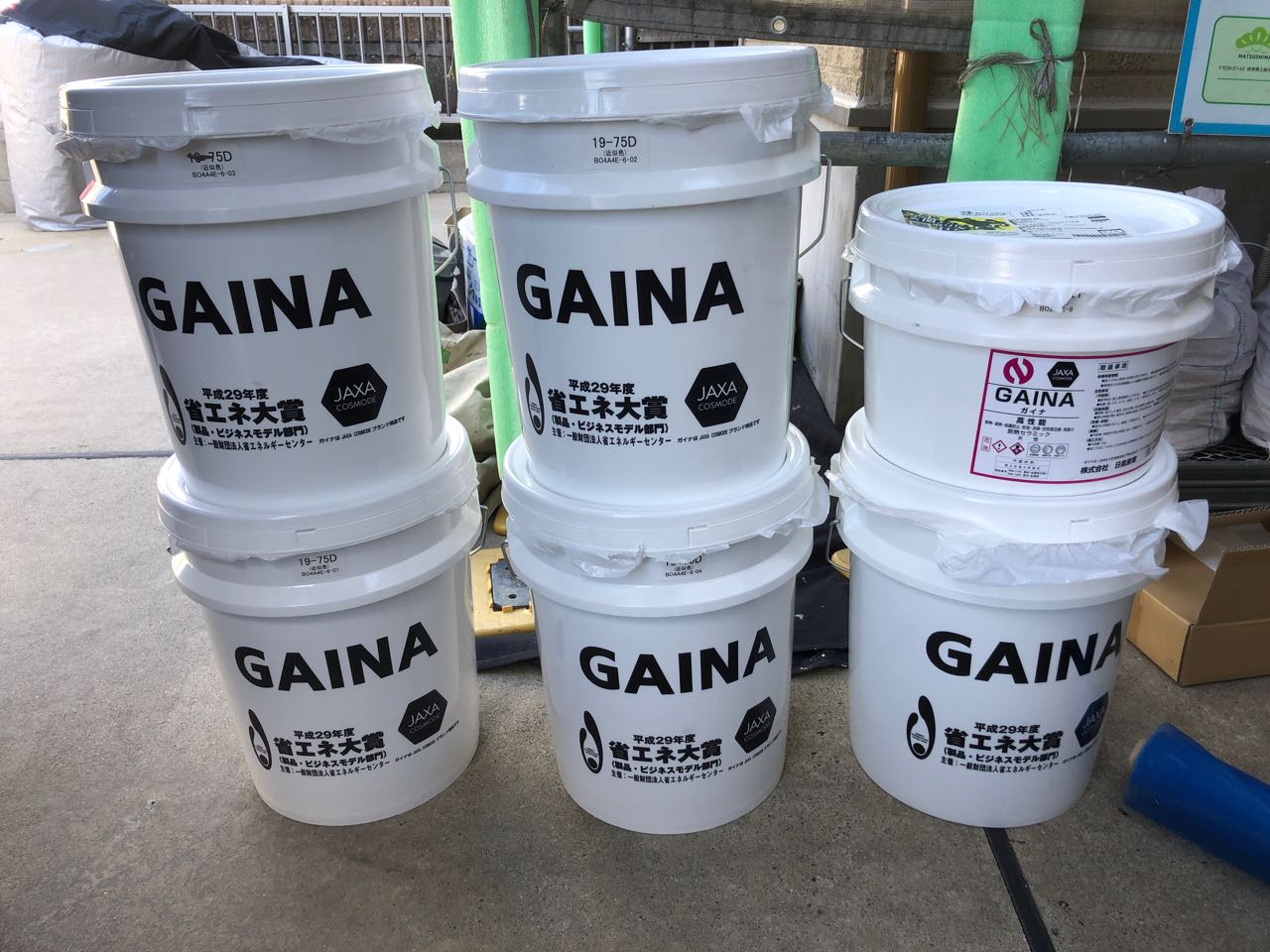 | 使用商材・建材 | 外壁①日進産業「断熱塗料ガイナ」:19-75D 外壁②日進産業「断熱塗料ガイナ」:19-50H |