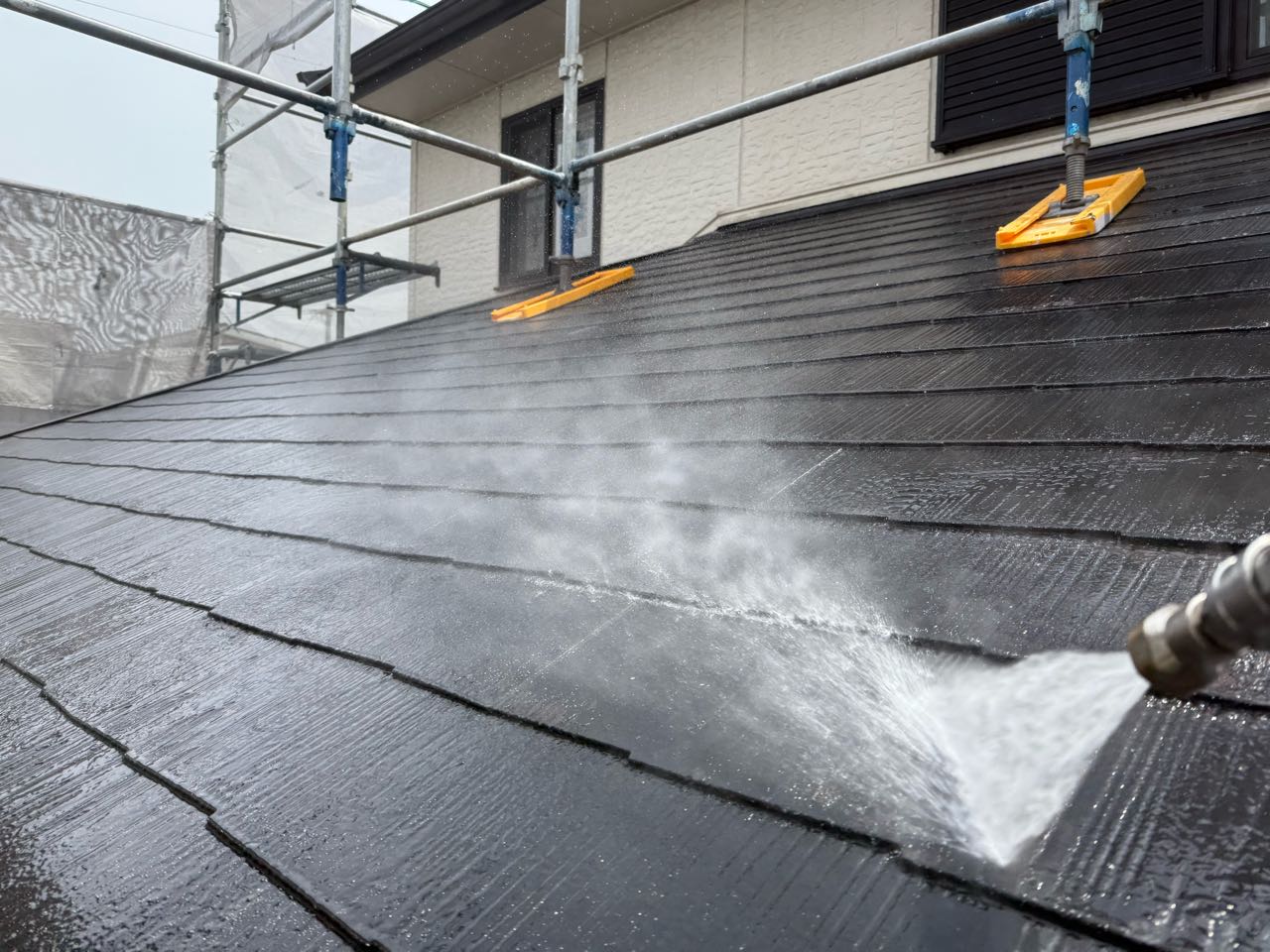 | 使用商材・建材 | 外壁①GAISO「ガイソーウォールフッ素4FⅡ」:35-50D 外壁②GAISO「ガイソーウォールフッ素4FⅡ」:35-70A 屋根「ガイソールーフネオ無機」GAISO:黒 |