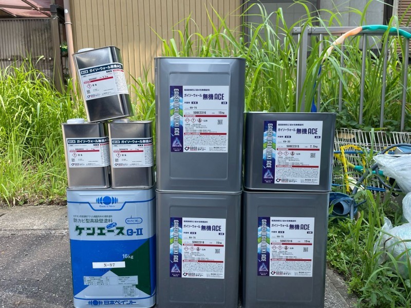 外壁①日進産業「断熱塗料ガイナ」:N-75 外壁②日進産業「断熱塗料ガイナ」:N-30 屋根GAISO「ガイソーウォール無機Z」:22-65B |