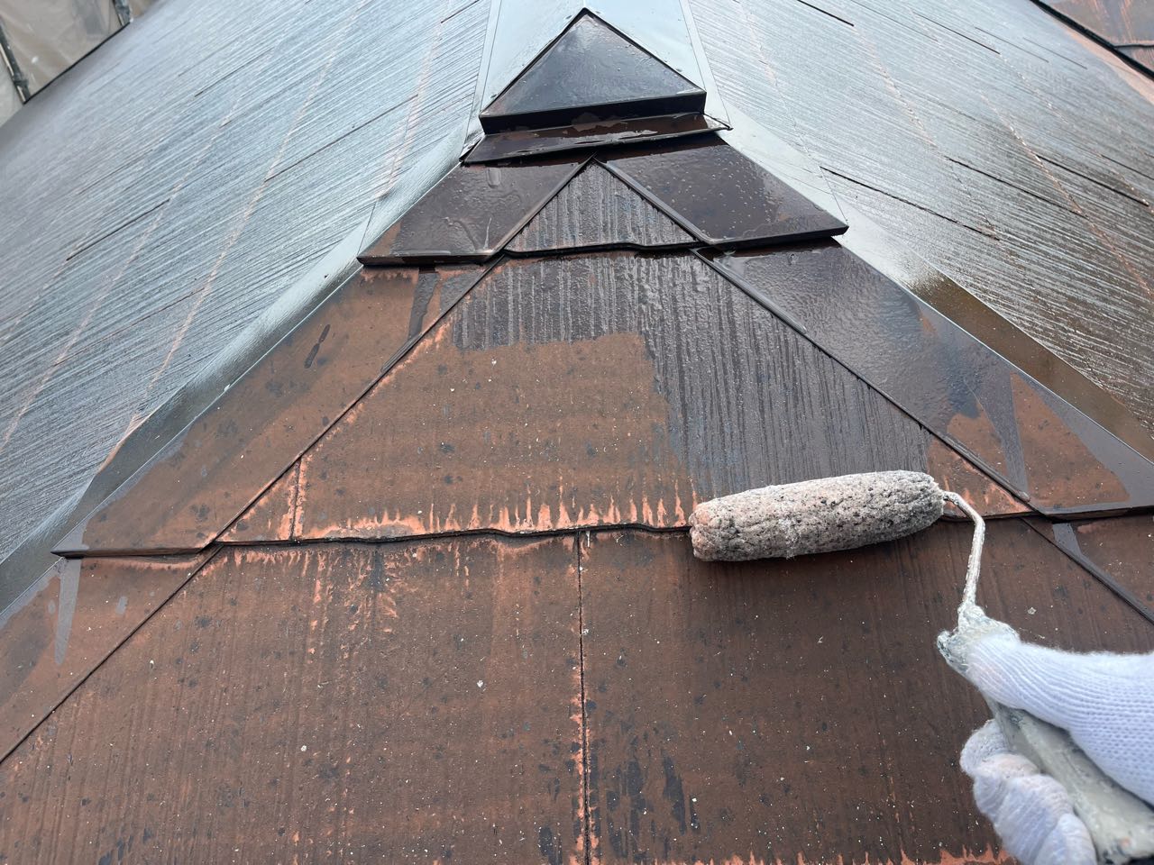 外壁①日進産業「断熱塗料ガイナ」:35-80B 屋根GAISO「ガイソールーフガードネオ無機」:N-30 |